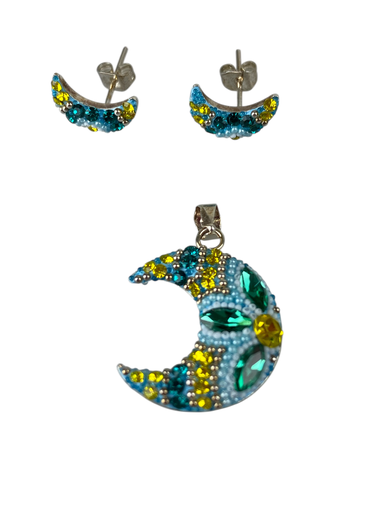JUEGO DIJE Y ARETES COLIBRÍ ROSA