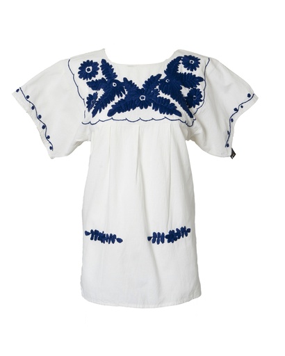 BLUSA MANTA BORDADA FLORES AZULES