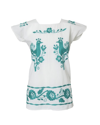 BLUSA MANTA BORDADO PÁJAROS VERDES