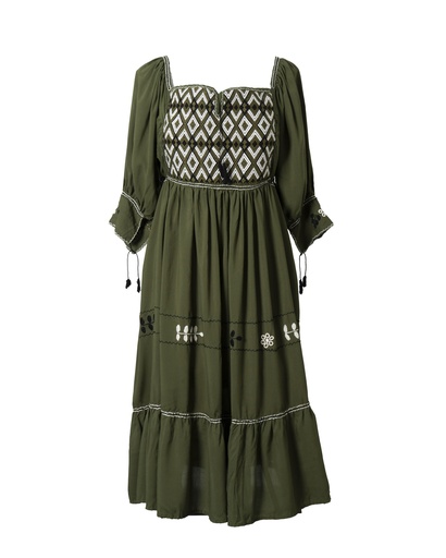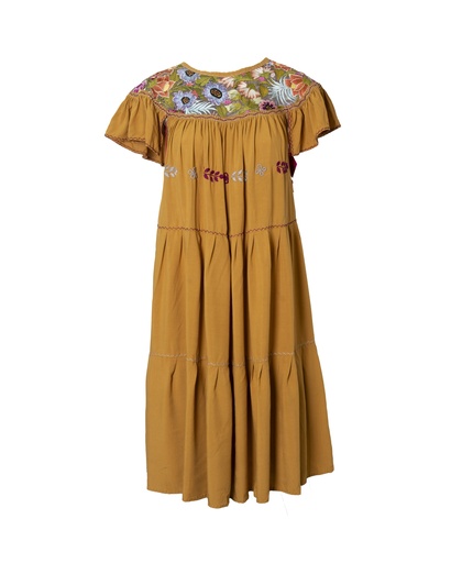 VESTIDO MOSTAZA BORDADO FLORES