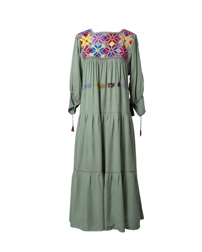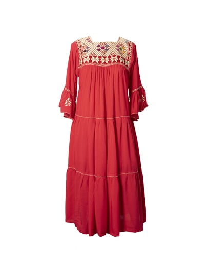 VESTIDO BORDADO EN PECHERA MANGA 3/4