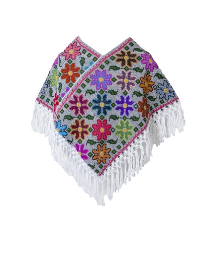 HUIPIL GRIS BORDADO FLORES CON FLECOS