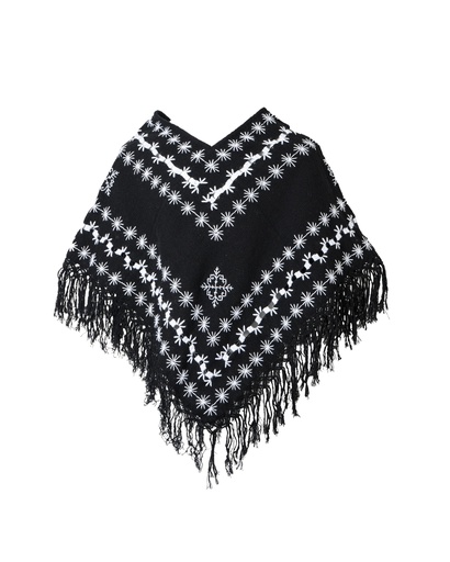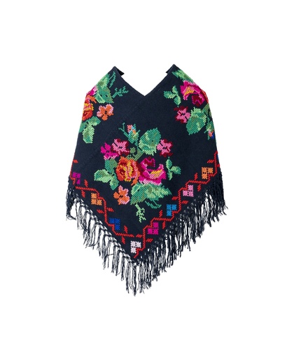 HUIPIL NEGRO BORDADO Y DESHILADO CON FLECOS