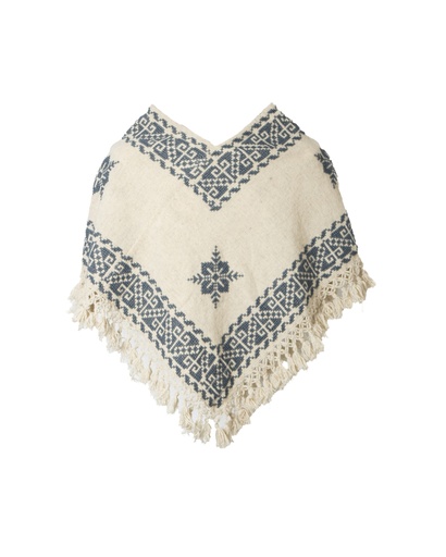 HUIPIL AZUL BORDADO FLORES CON FLECOS